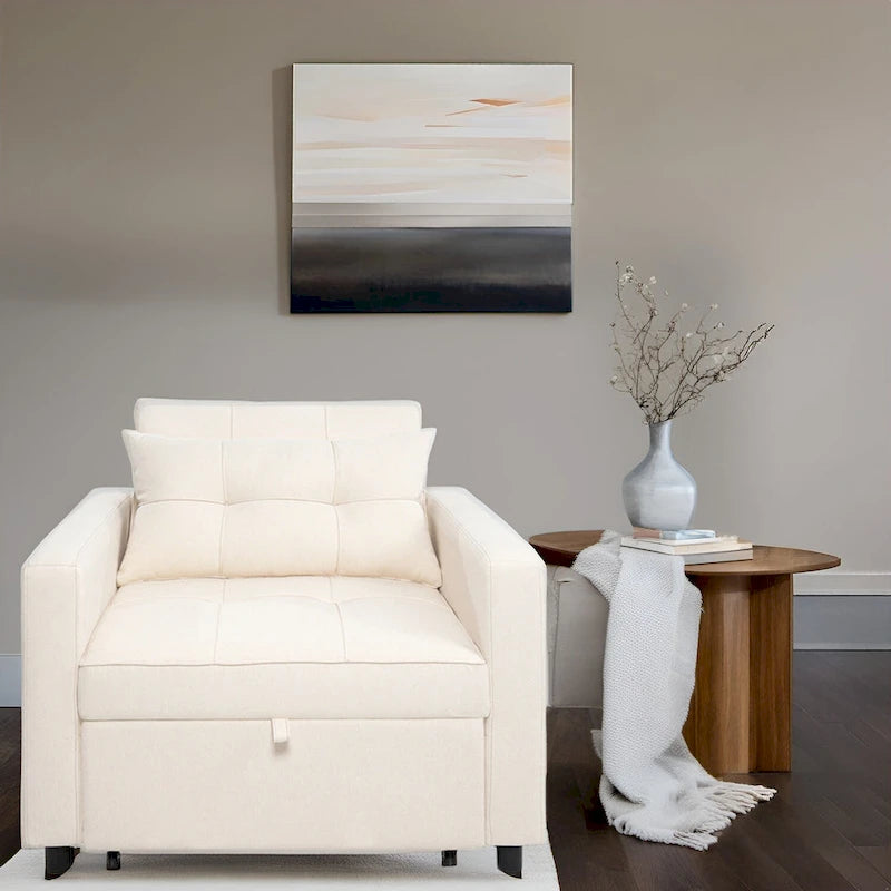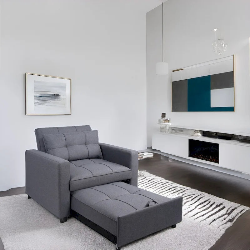 VERSATILE SPACE SAVER: Our 3-in-1 sleeper chair is an ideal choice for compact living spaces, effortlessly transitioning between a comfortable chair, a relaxing lounger, and a convenient bed. Its smart, space-saving design brings both style and practicality to any room, making it a perfect fit even in smaller living rooms or bedrooms, including the Sofabed for living room (Sofabed para sala de estar).