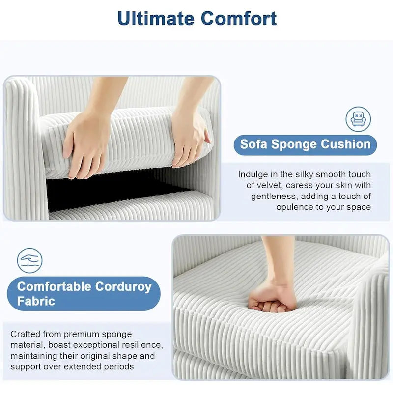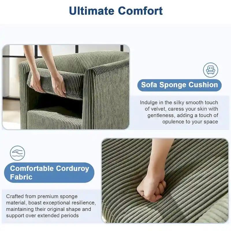 Ultimate Comfort High backrest and comfort armrests of swivel barrel chairs for living room wrapped in plush sponge and corduroy fabric, the ergonomic curve design provides full-body relaxation