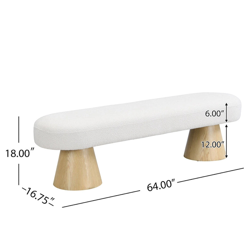 Dimensions: 64L x 16.75W x 18H Weight Capacity: 300 lbs Materials: MDF, Boucle Fabric, High-Density Foam Included: 1 Dining Bench