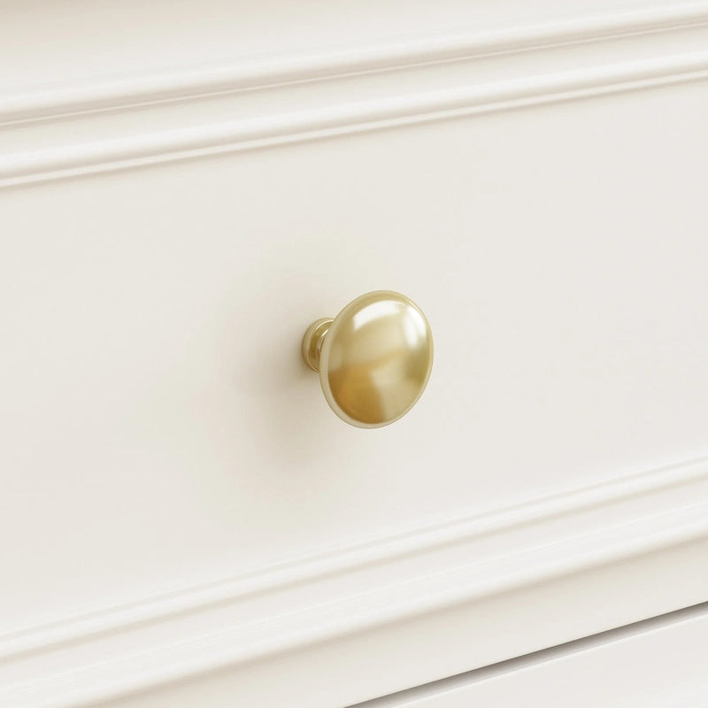 Add a touch of elegance to your bedroom with this 63W wood dresser. Made with a combination of solid and engineered wood, this dresser features 12 spacious drawers that glide out smoothly on metal glides. The soft gold handles add a touch of sophistication to the crisp white finish. With ample space for all your storage needs, this dresser is a perfect addition to any modern bedroom.
