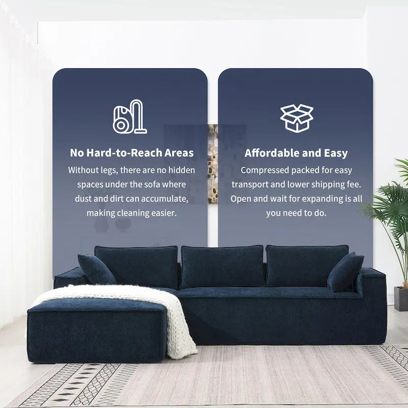 No Assembly Required: Skip the hassle of assembly. Simply unpack, pat each piece to restore its shape, and the sofa will be ready to use. Each module moves independently, making it easy to navigate tight spaces and hallways during relocation.