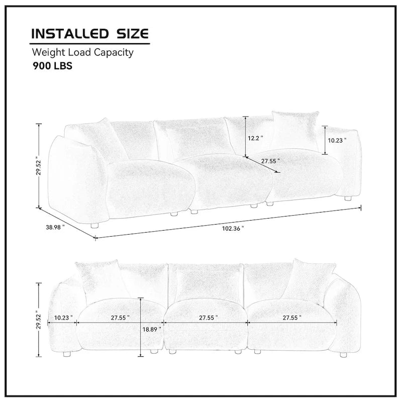 Beautiful and stylish look of the comfy couch sofa for living rooms as well as modern rooms with its smooth and clean lines and streamlined silhouette. This modern cloud couch for living room provides enough functionality for everyday use. The living room comfy cloud couch is made of solid wood frame and stable plastic leg sofa to ensure every part of the modern sofa is sturdy. The cushions on the legs of the extra deep sofa protect the floor from scratches, you can rest and read in the comfy cloud couch with confidence. Notice:Manual measurement has been used, there may be some reasonable error. All the pictures are taken by actual samples, slight chromatic aberration may occur due to lighting or display.