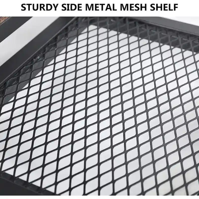 - 2 side metal mesh shelves offering ample space for the placement of DVD player, receiver, hard disk, CD or books in an organized.