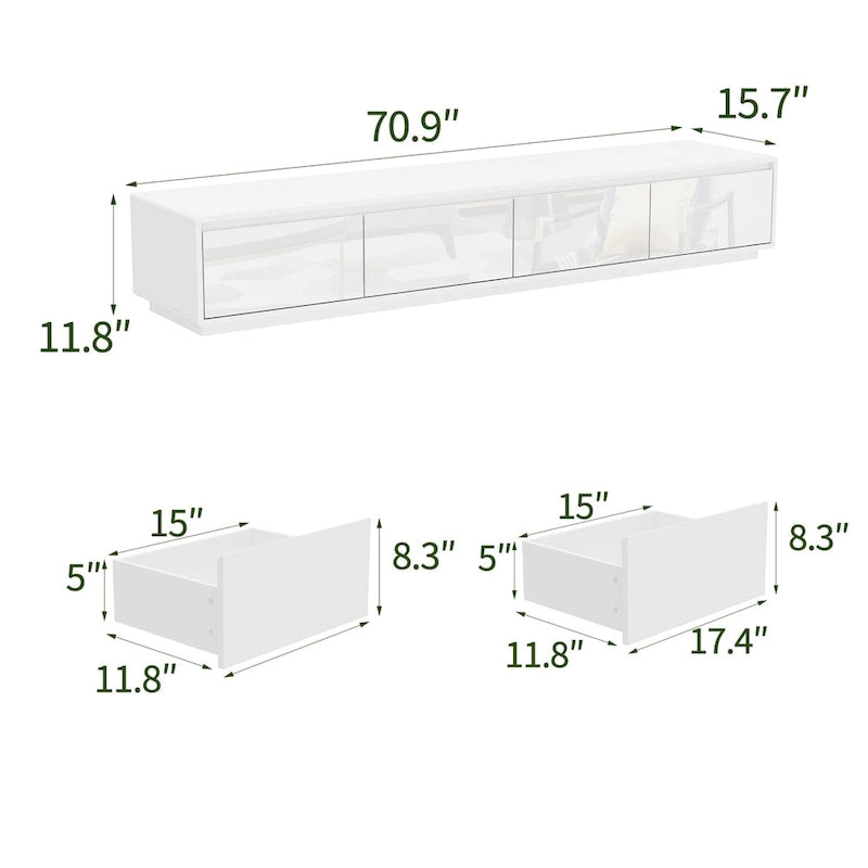 Generous dimensions (70.9 W x 15.7 H x 11.8 D) to accommodate large screen TVs