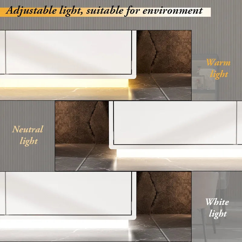 Illuminated White High Gloss Television Entertainment Center Console