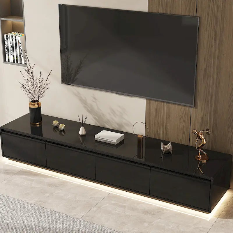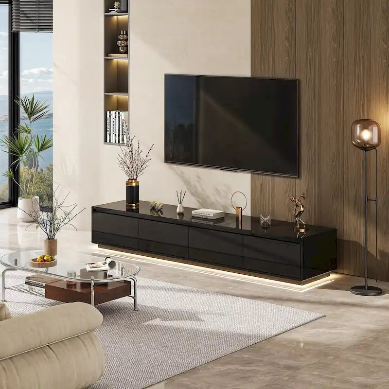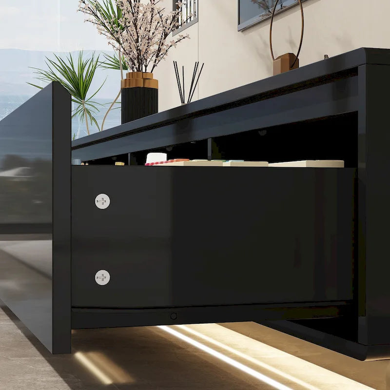 Transform your entertainment area with this chic and stylish TV stand that's perfect for showcasing your flat-screen TV and storing all your media essentials. The LED lighting creates the perfect movie-viewing atmosphere, while the high gloss finish ensures this piece stands out as a centerpiece in any room. Whether it's movie night or a quiet evening with a book, this TV stand offers the perfect blend of style and function for your everyday life.